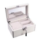 Black Leather 20 Cufflink Box with Glass Top and Snap Closure.