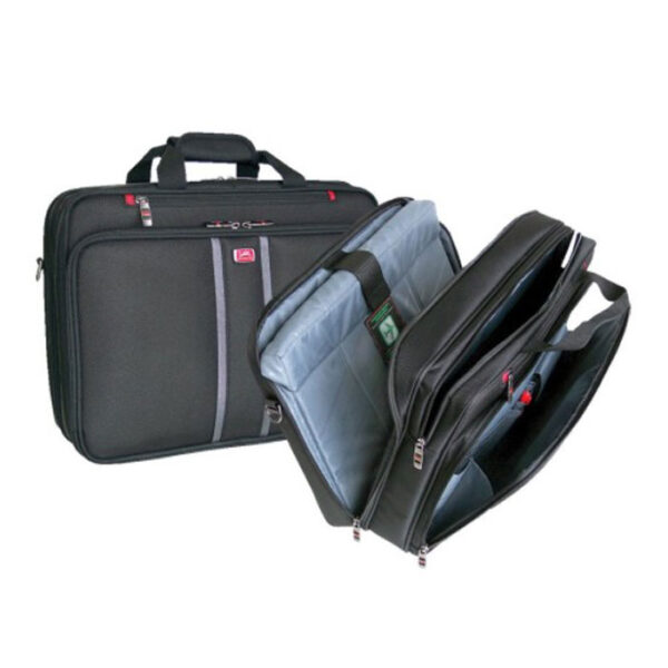 This laptop briefcase features a padded checkpoint-friendly compartment that permits airport security screening without having to remove your laptop. An RFID secure pocket is equipped with the latest RFID wave blocking technology to ensure your data and cards are safe while providing easy access to airline tickets, passport or documents. A seperate tablet compartment, organizer on the front and multiple practical pouches and pockets keep small personal items at your fingertips. The rear is equipped with an attach-a-bag strap to piggy-back the briefcase on other baggage. Truly designed for mobility and functionality.
