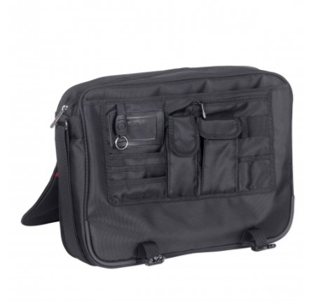 This expandable messenger bag features a large zippered storage compartment. An organizer on the front with multiple practical pouches and pockets keep small personal items at your ngertips. The rear is equipped with an attach-a-bag strap to piggy-back the bag on other baggage.Truly designed for mobility and functionality.
