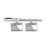 Brushed & shiny rhodium with 3-crystals Cufflink and Tie Slide Set 60-1013
