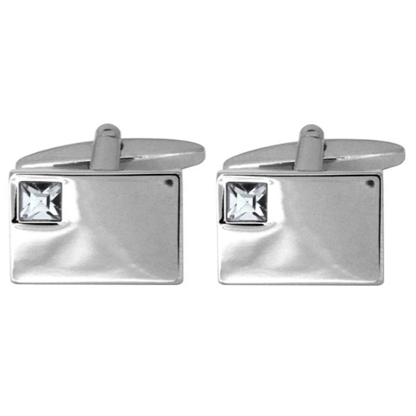Clear Crystal Thick Rectangular Rhodium Plated Cufflinks 90-1154
