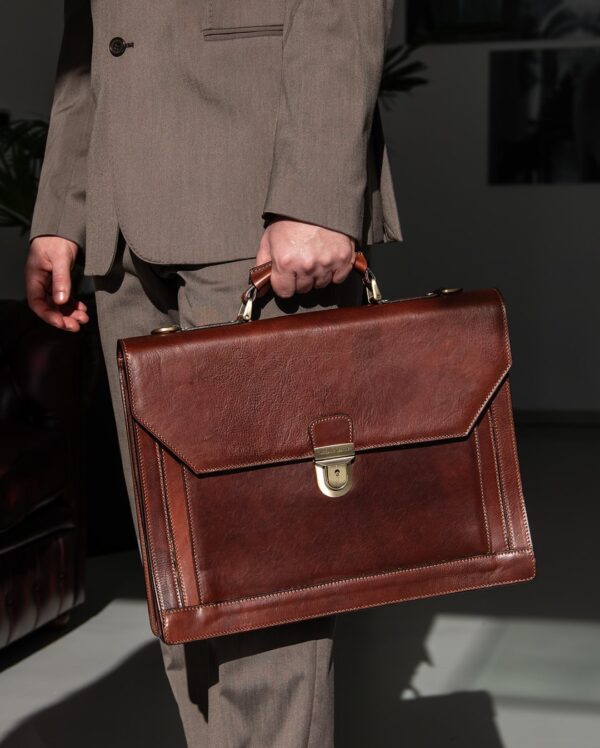 Cremona is a classic leather briefcase with a professional profile and the unmistakable character of Tuscan leatherwork: clean lines, rigid construction and a refined matte finish.