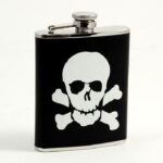 6 oz. Stainless Steel Flask in Pink “Croco” Leather with Engraving Medallion.