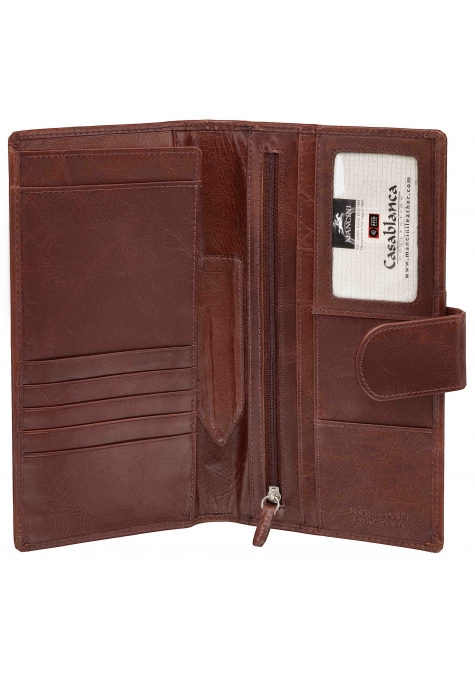 Mancini CASABLANCA Collection celebrates the fusion of traditional and contemporary styling. Effortlessly urban-chic with a laid back attitude. Featuring the latest RFID wave blocking technology to ensure your data and cards are safe. The special metallic layers integrated into the card slots prevent thieves from electronically reaching into your wallet. Finely hand-crafted in top grain leather.