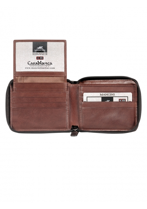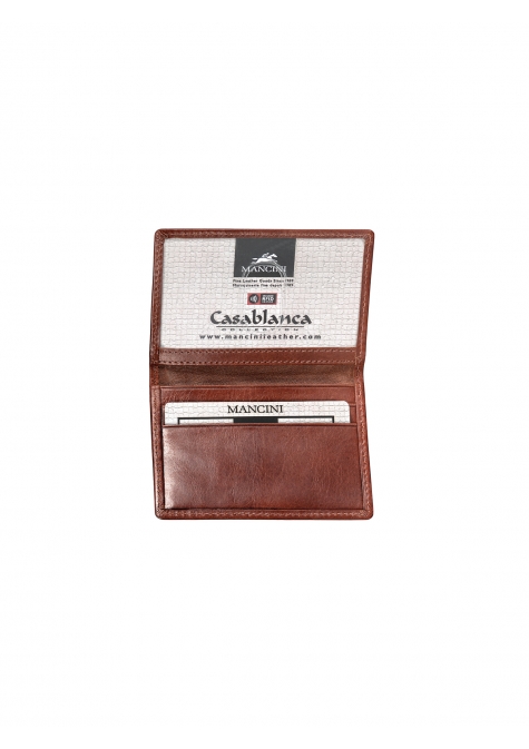 Mancini CASABLANCA Collection celebrates the fusion of traditional and contemporary styling. Effortlessly urban-chic with a laid back attitude. Featuring the latest RFID wave blocking technology to ensure your data and cards are safe. The special metallic layers integrated into the card slots prevent thieves from electronically reaching into your wallet. Finely hand-crafted in top grain leather.