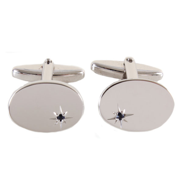 Oval Sapphire Star Set Silver plated Cufflinks 90-9031