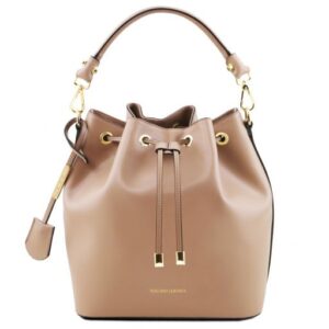 -Detachable and adjustable leather shoulder strap – Semi-rigid structure – 1 compartment – Saffiano leather