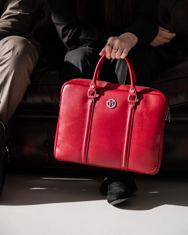 The semi-rigid construction helps the bag hold its shape throughout the day. Finished with a metal TL logo, silver-tone hardware and a secure top zip closure, it’s a polished choice for commuting and meetings.