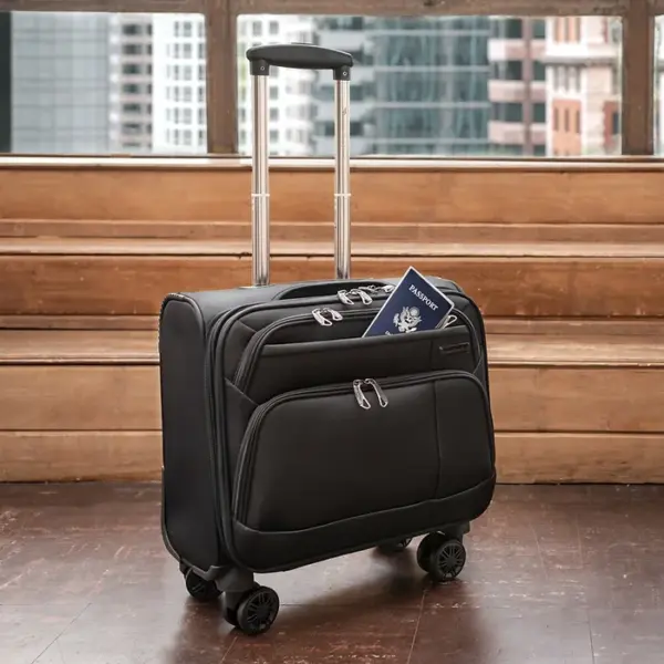 A quick tug at the telescopic handle reveals a sturdy construction. The four, 360° spinners allow it to roll on all directions.