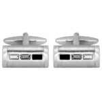 Black,Grey & Clear Crystals set in Rectangular Brushed Rhodium Plated Cufflinks 90-1159