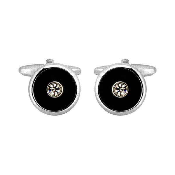 Round Black with Centre Crystal Rhodium Plated Cufflinks 90-1178